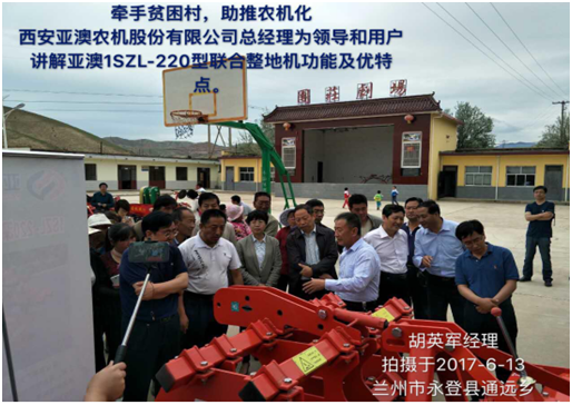 為支持西部貧困地區(qū)農(nóng)機(jī)化發(fā)展,2017年6月13日,中國(guó)農(nóng)業(yè)機(jī)械化協(xié)會(huì)聯(lián)合西安亞澳、甘肅福祥等五家國(guó)內(nèi)知名農(nóng)機(jī)裝備企業(yè)為甘肅省永登縣通遠(yuǎn)鄉(xiāng)團(tuán)莊村捐贈(zèng)了價(jià)值約50萬(wàn)元的農(nóng)機(jī)產(chǎn)品和現(xiàn)金。