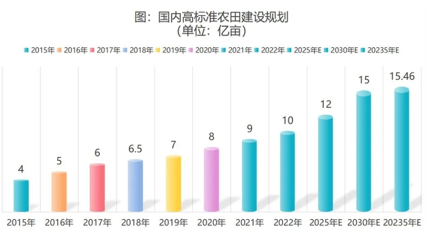 新的規(guī)劃要求:優(yōu)先把東北黑土地區(qū)、平原地區(qū)、具備水利灌溉條件地區(qū)的耕地建成高標(biāo)準(zhǔn)農(nóng)田,提高建設(shè)標(biāo)準(zhǔn)和質(zhì)量,推動(dòng)逐步把具備條件的永久基本農(nóng)田全部建成高標(biāo)準(zhǔn)農(nóng)田。完善高標(biāo)準(zhǔn)農(nóng)田建設(shè)、驗(yàn)收、管護(hù)機(jī)制,建立健全農(nóng)田建設(shè)工程質(zhì)量監(jiān)督檢驗(yàn)體系。實(shí)施耕地有機(jī)質(zhì)提升行動(dòng),加強(qiáng)黑土地保護(hù)利用和退化耕地治理。加強(qiáng)現(xiàn)代化灌區(qū)建設(shè)改造,健全農(nóng)業(yè)水利基礎(chǔ)設(shè)施網(wǎng)絡(luò)。全面提升農(nóng)業(yè)防災(zāi)減災(zāi)救災(zāi)能力。